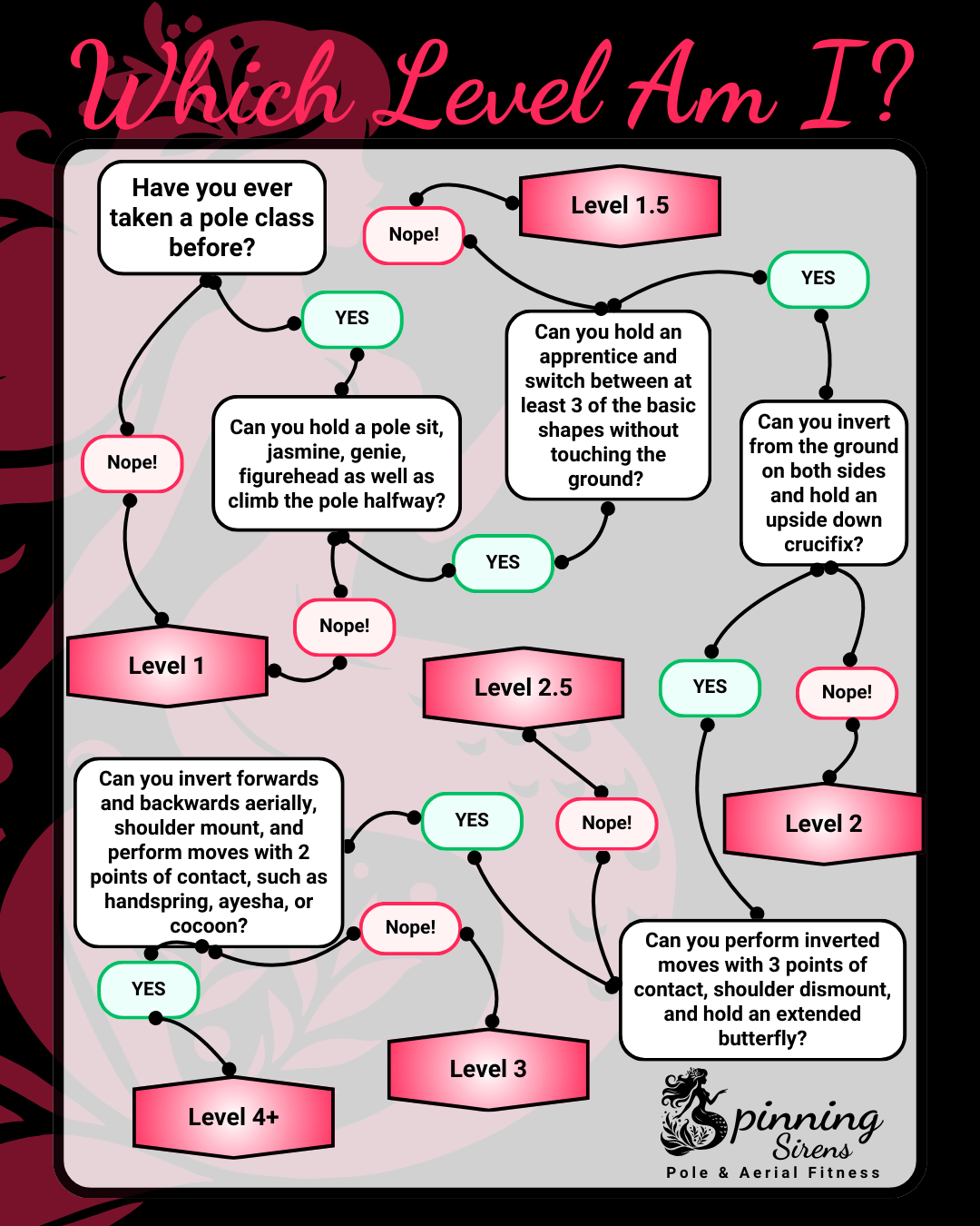 Use promo code WELCOMESIREN at checkout to take your first Beginner Pole, Lyra, or Silk class for just $19.